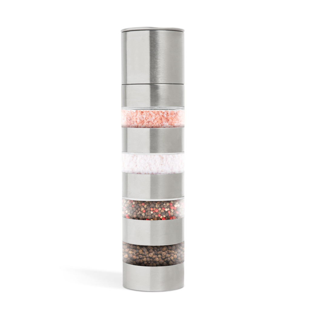 Rozsdamentes acélból készült fűszermalom, amely 4 tárolórésszel rendelkezik, mely egységek sorrendje szabadon változtatható, így mindig kéznek van az a fűszer, amire szüksége van. Az őrlés finomsága egy tekerő segítségével állítható, attól függően, hogy éppen milyen minőségű őrlésre van szüksége.