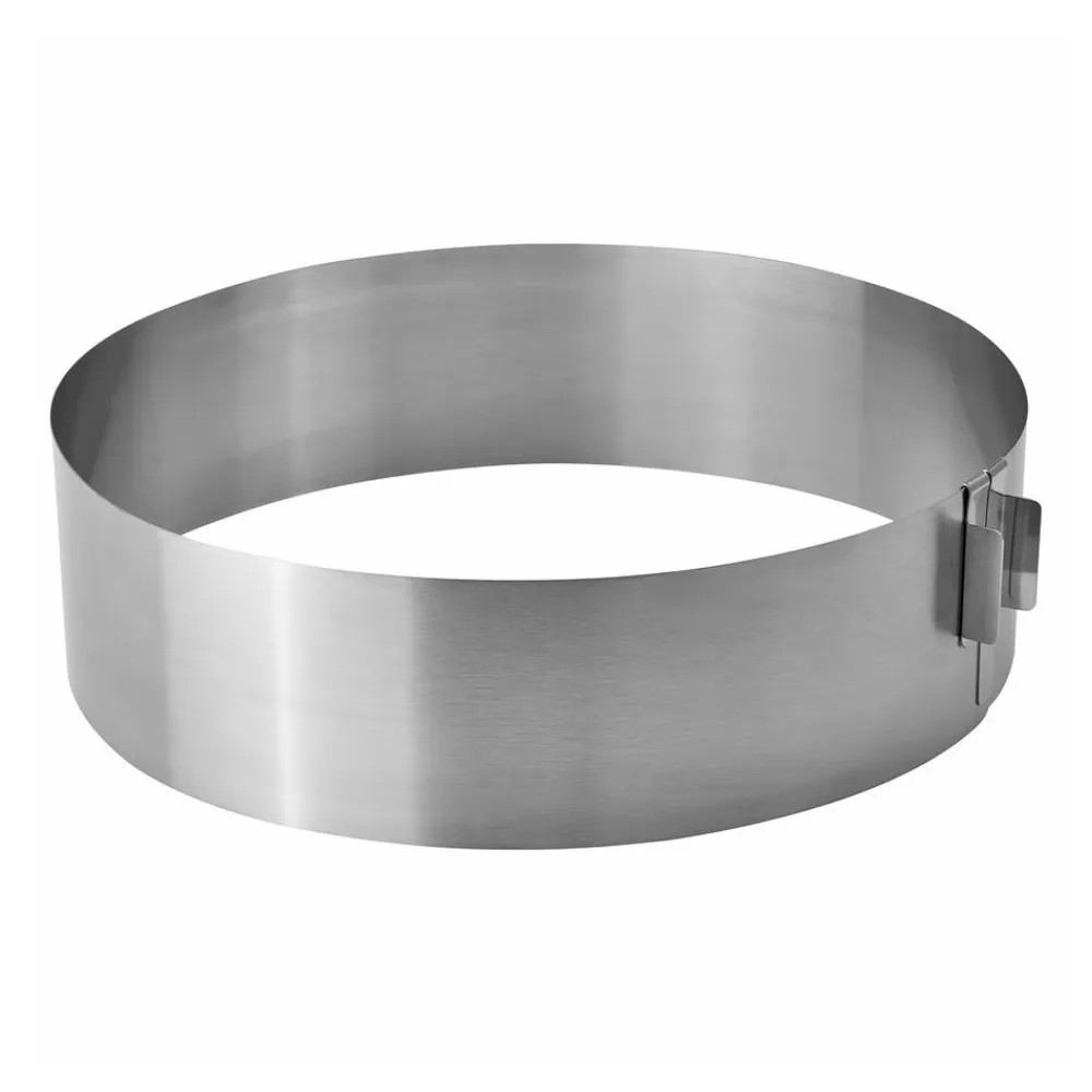 Ez a rozsdamentes acélból készült, rendkívül sokoldalú eszköz a tökéletes formák titka, amely nélkülözhetetlen minden cukrász és otthoni sütés szerelmese számára. A 20 cm-től egészen 40 cm-ig állítható átmérőnek köszönhetően egyetlen karika elegendő a különböző méretű torták és sütemények elkészítéséhez.